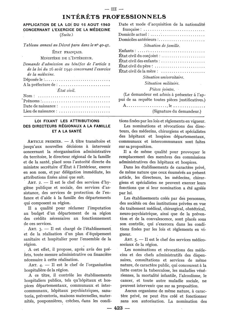 1940, n° 116_118, partie paramédicale. -