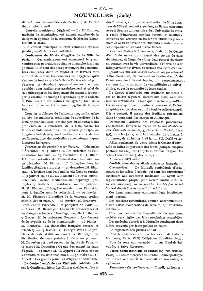 1940, n° 116_118, partie paramédicale. -