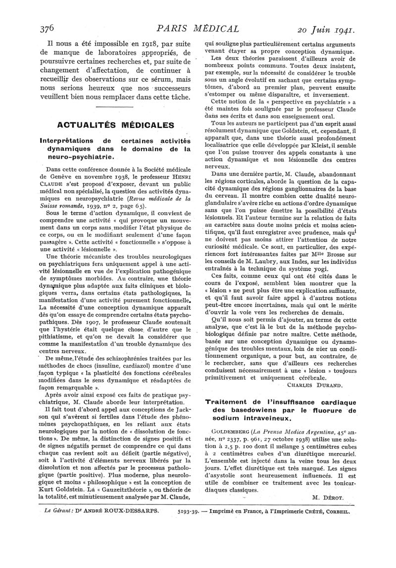 1941, n° 119, partie médicale. -