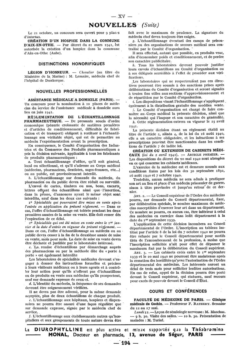 1941, n° 120, partie paramédicale. -