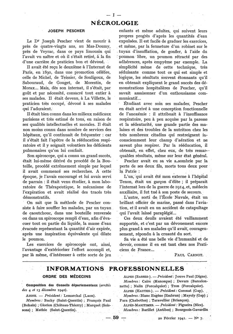 1941, n° 120, partie paramédicale. -
