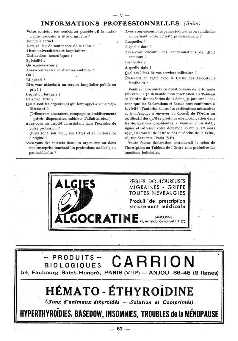 1941, n° 120, partie paramédicale. -