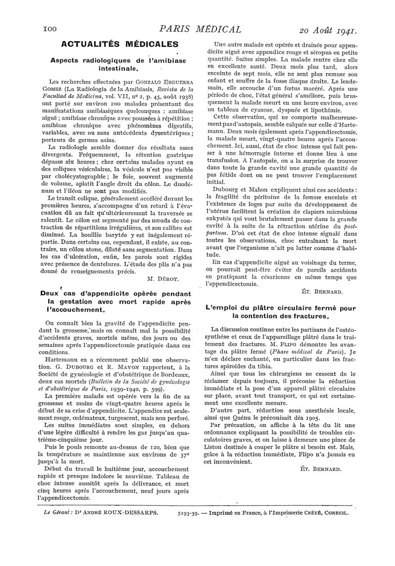 1941, n° 121, partie médicale. -