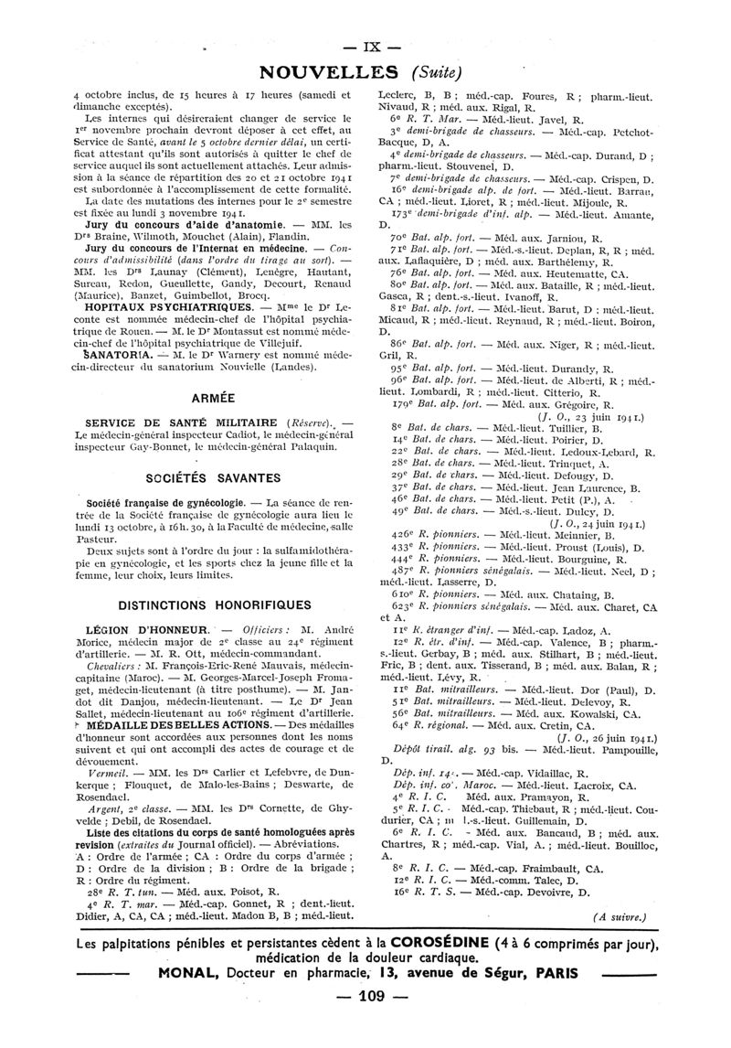 1941, n° 122, partie paramédicale. -