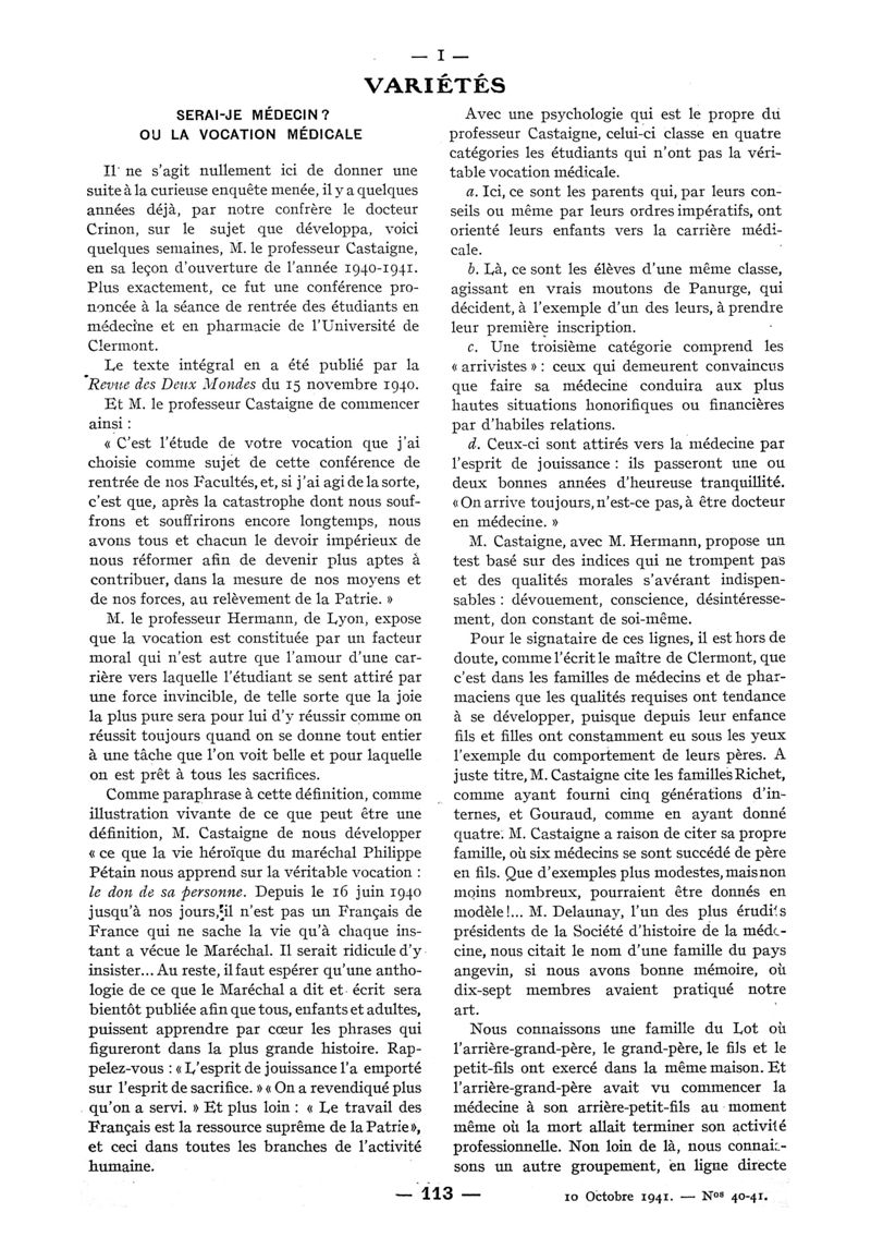 1941, n° 122, partie paramédicale. -