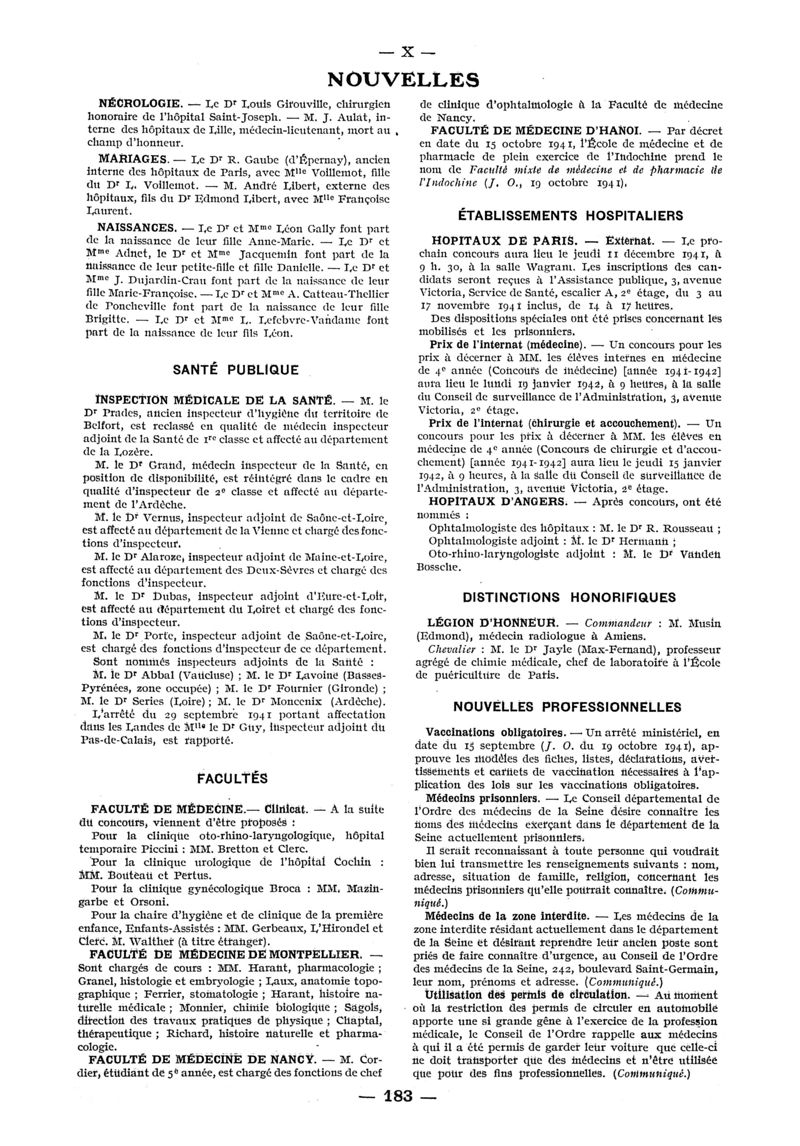 1941, n° 122, partie paramédicale. -