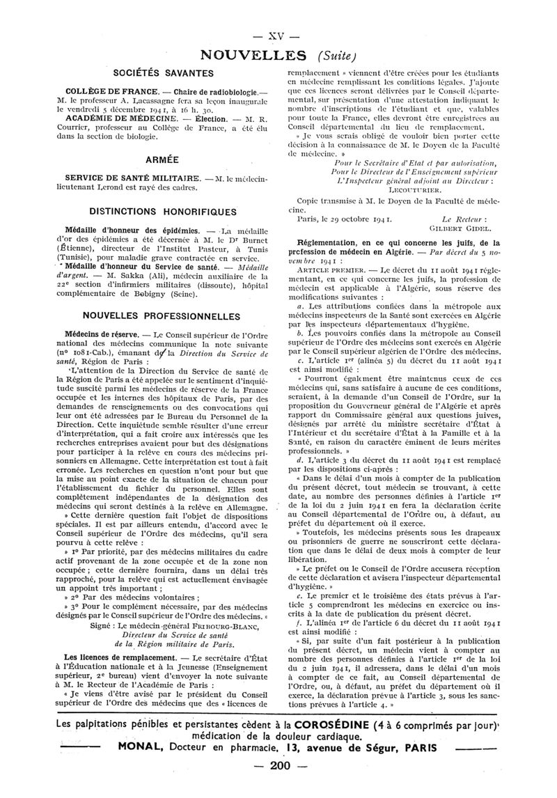1941, n° 122, partie paramédicale. -
