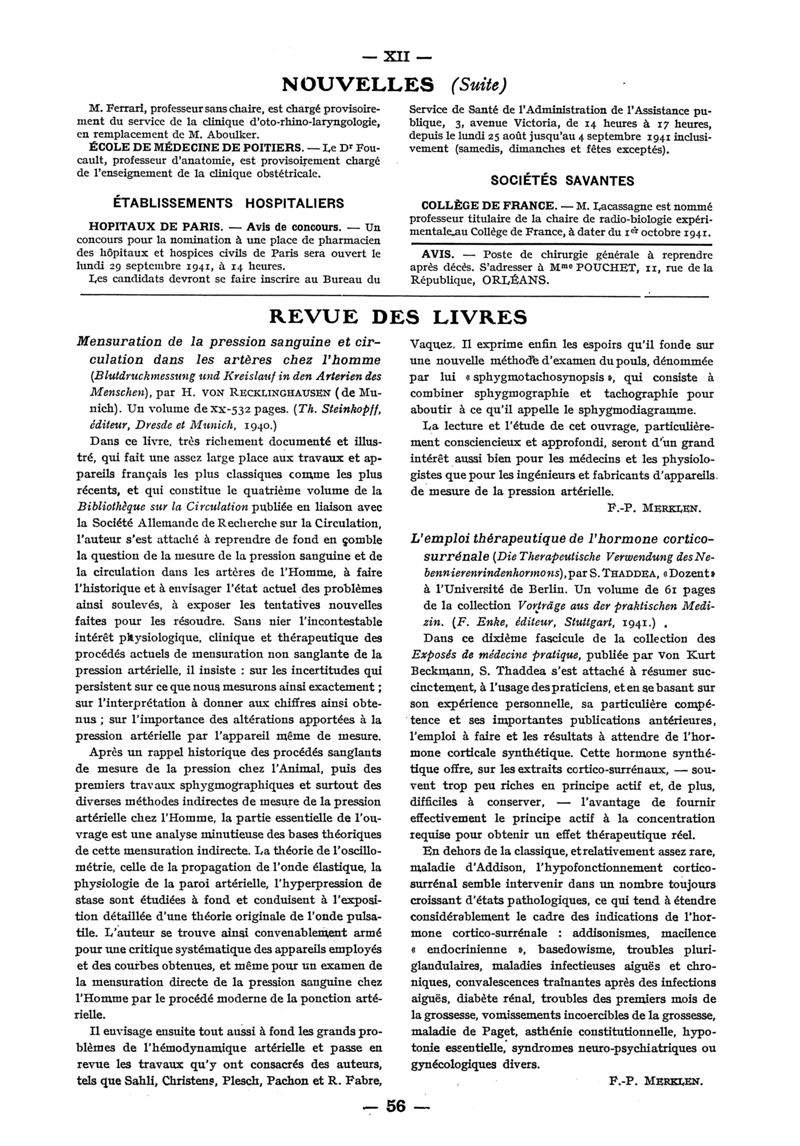 1941, n° 122, partie paramédicale. -