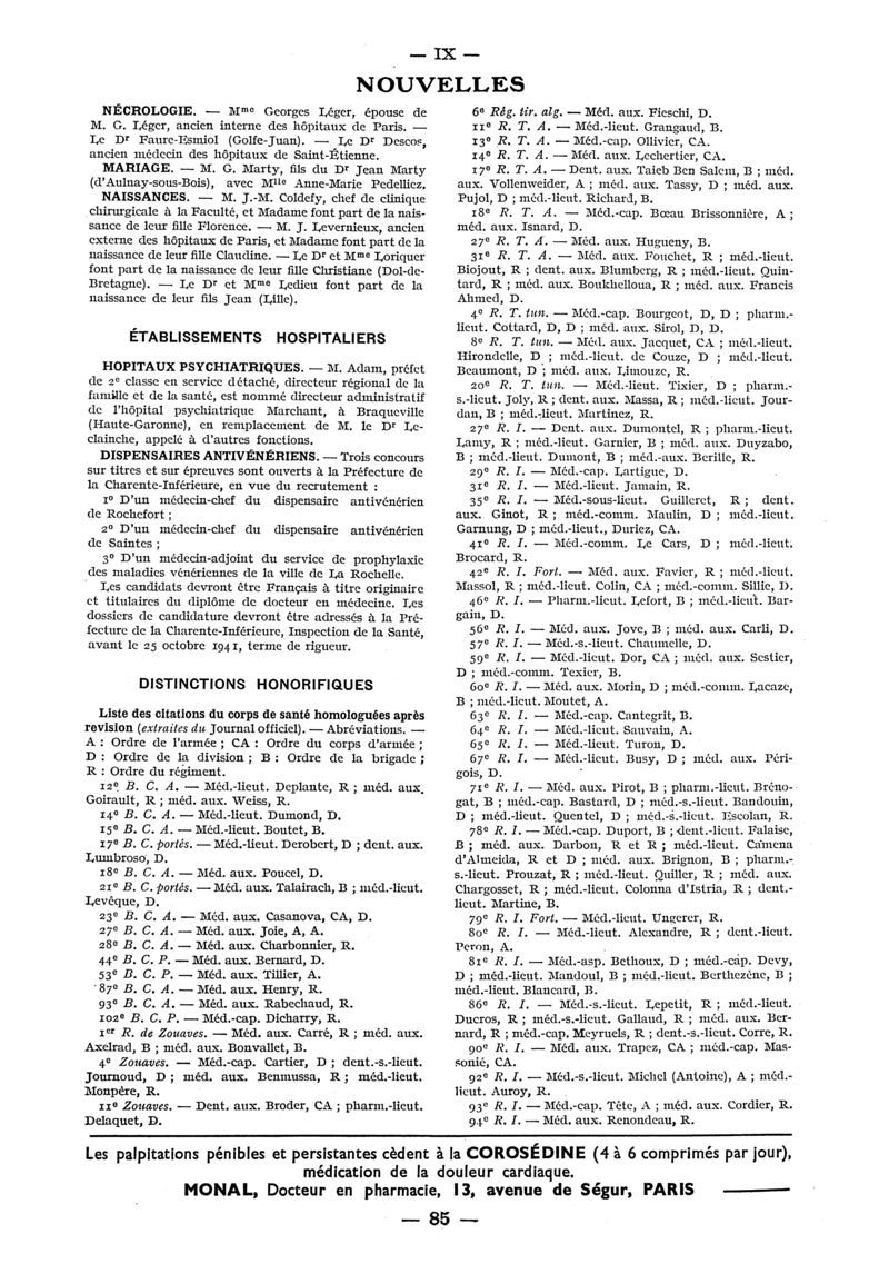 1941, n° 122, partie paramédicale. -