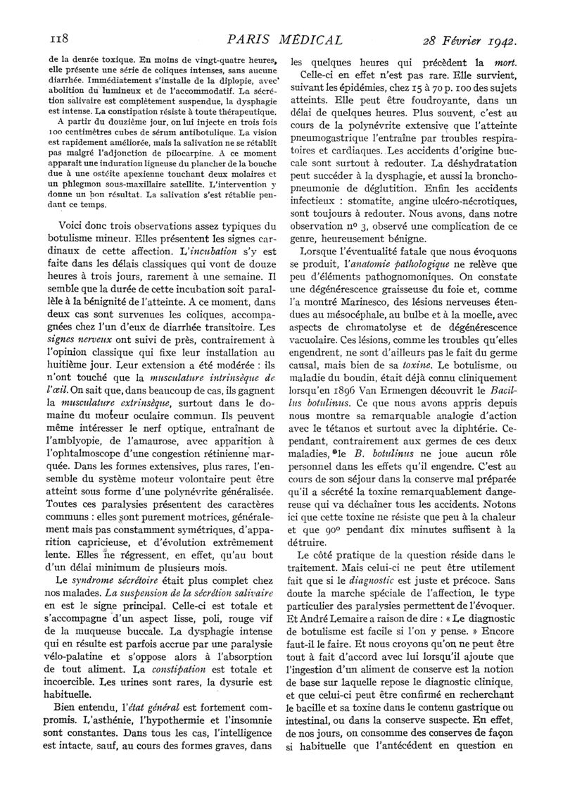 1942, n° 123, partie médicale. -