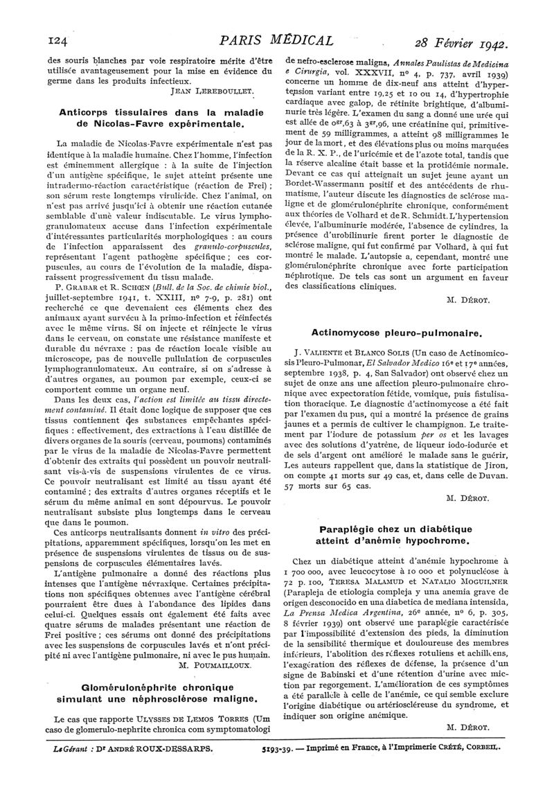 1942, n° 123, partie médicale. -