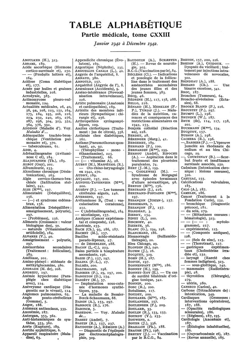 1942, n° 123, partie médicale. -