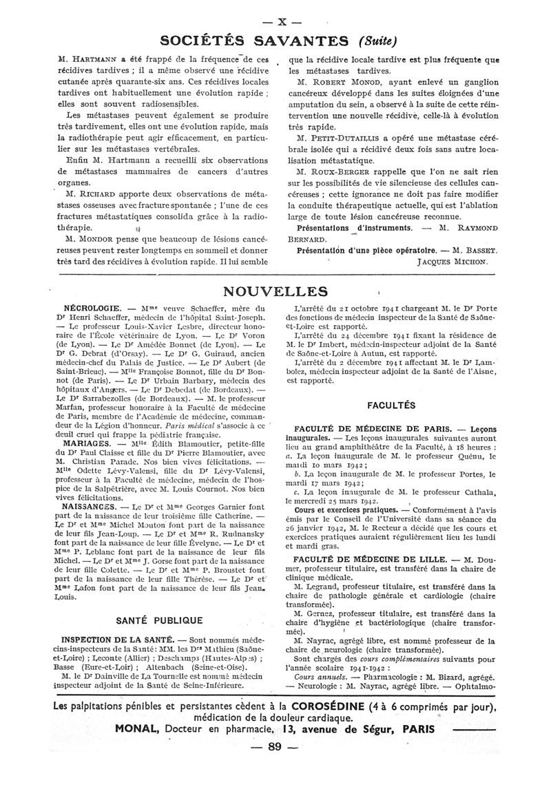 1942, n° 124, partie paramédicale. -