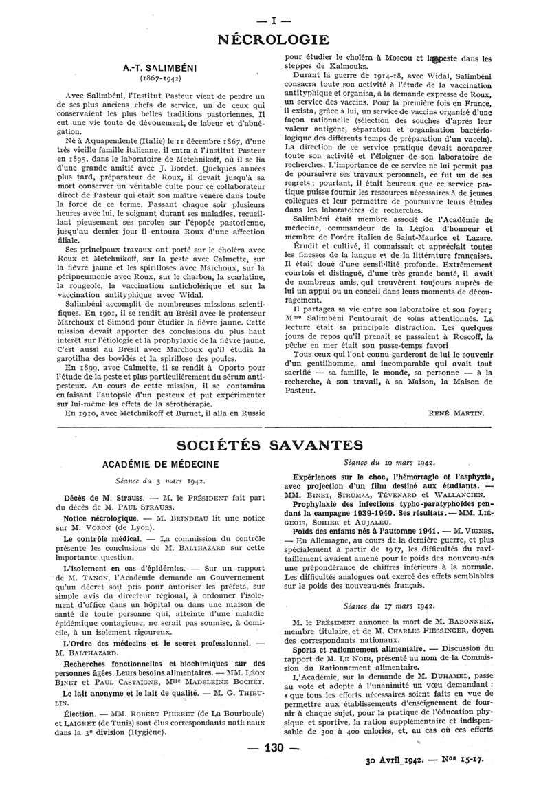 1942, n° 124, partie paramédicale. -