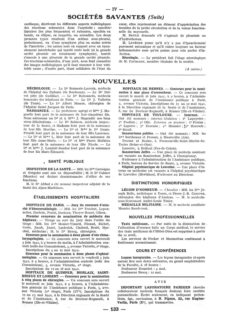 1942, n° 124, partie paramédicale. -