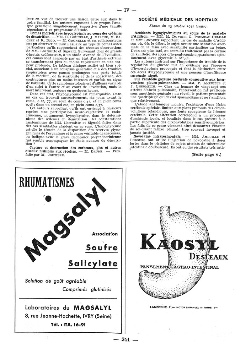 1942, n° 124, partie paramédicale. -