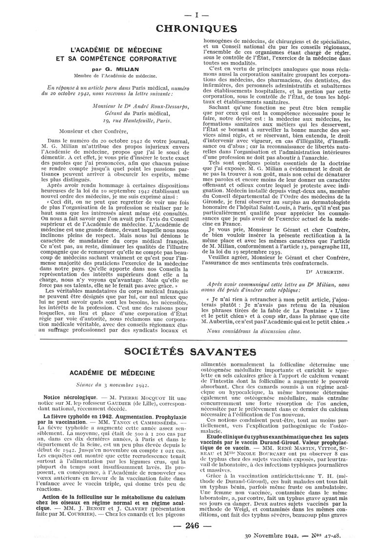 1942, n° 124, partie paramédicale. -