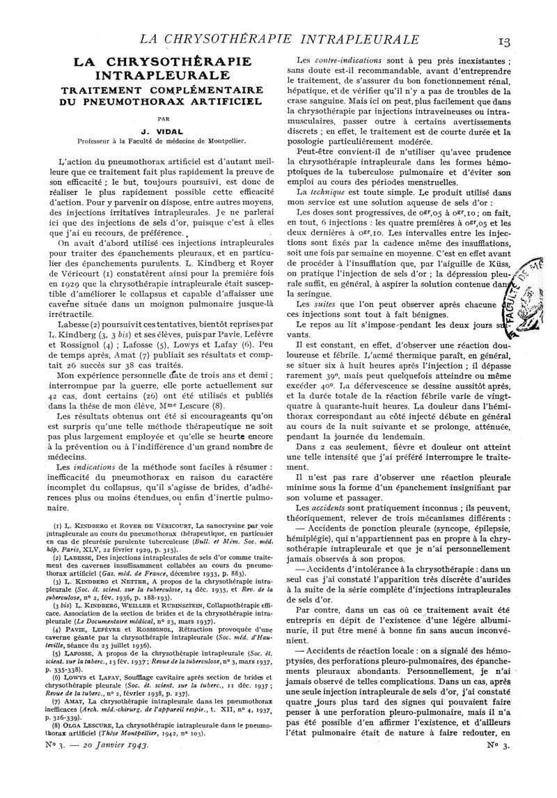 1943, n° 125, partie médicale. -