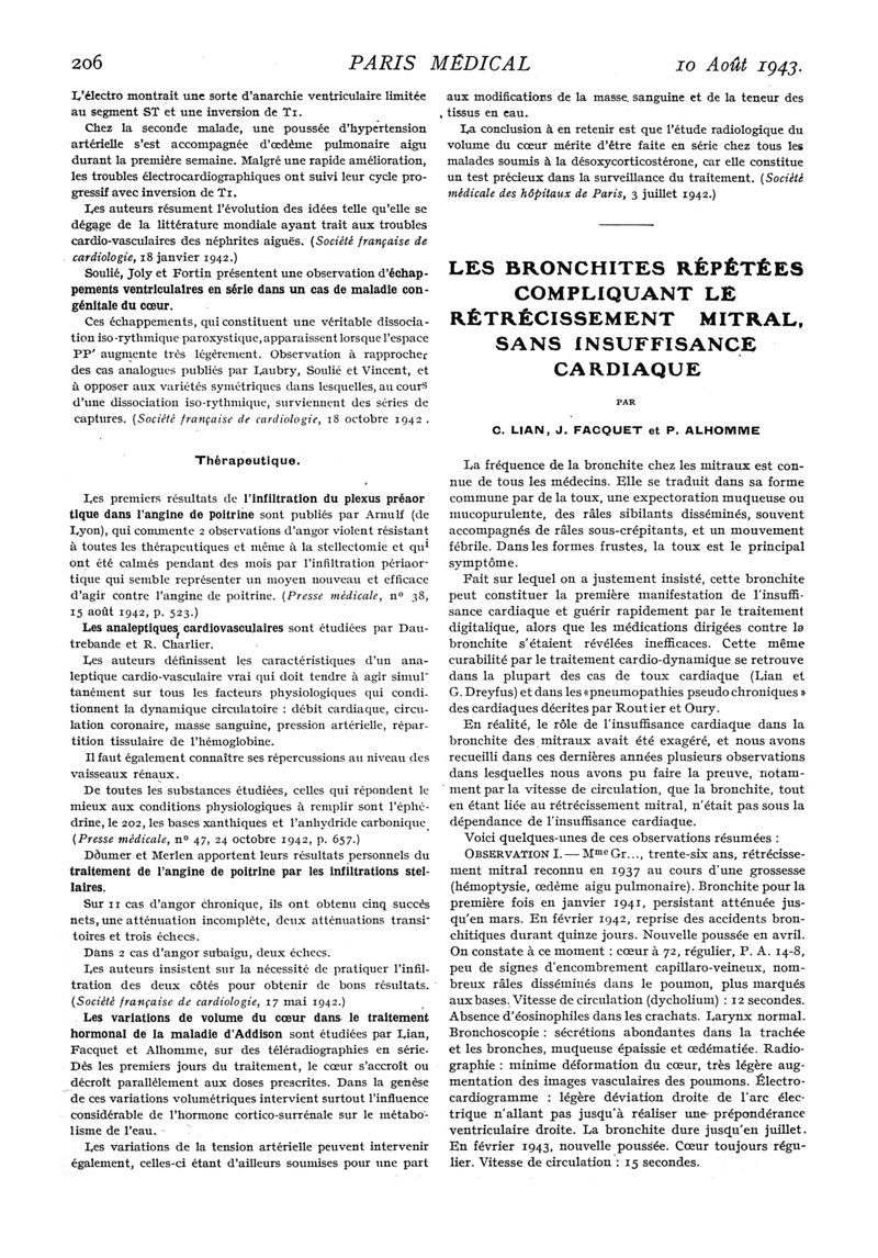 1943, n° 125, partie médicale. -