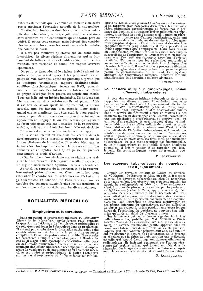 1943, n° 125, partie médicale. -