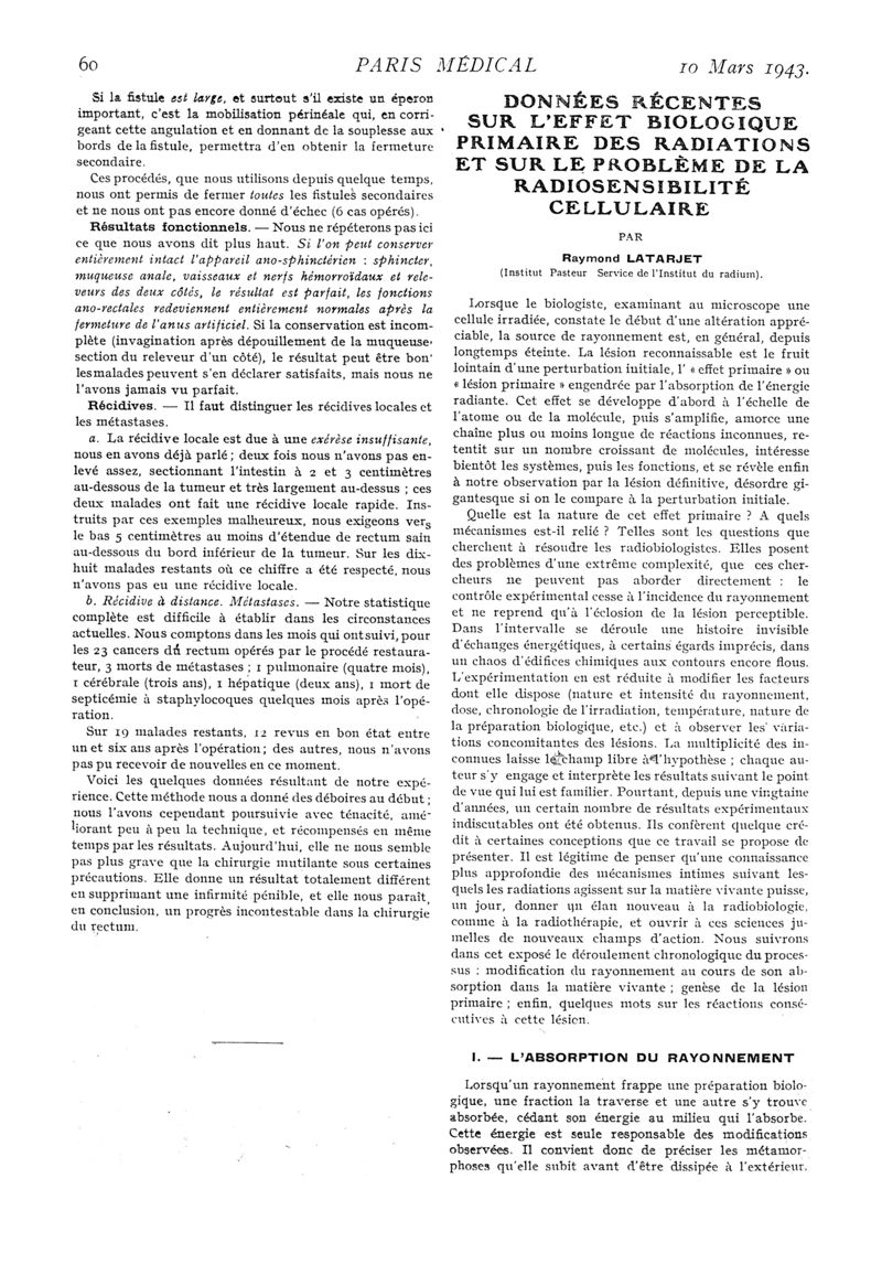 1943, n° 125, partie médicale. -