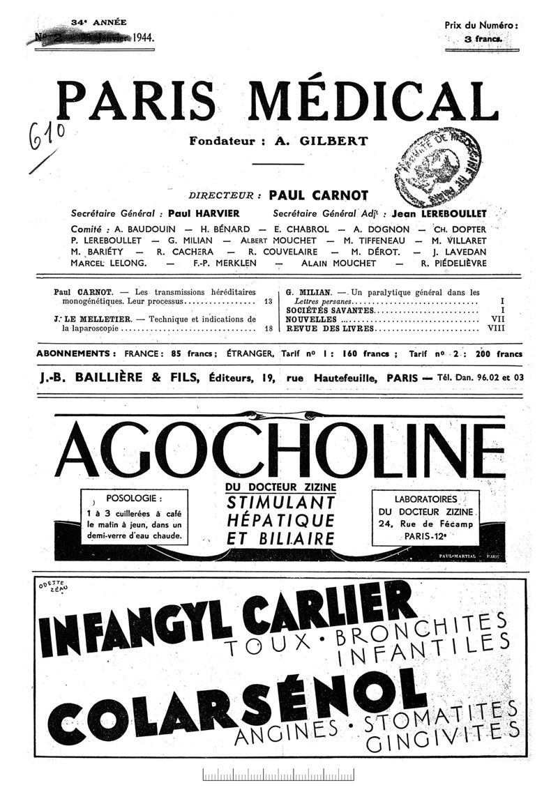 1944, n° 127, partie médicale. -