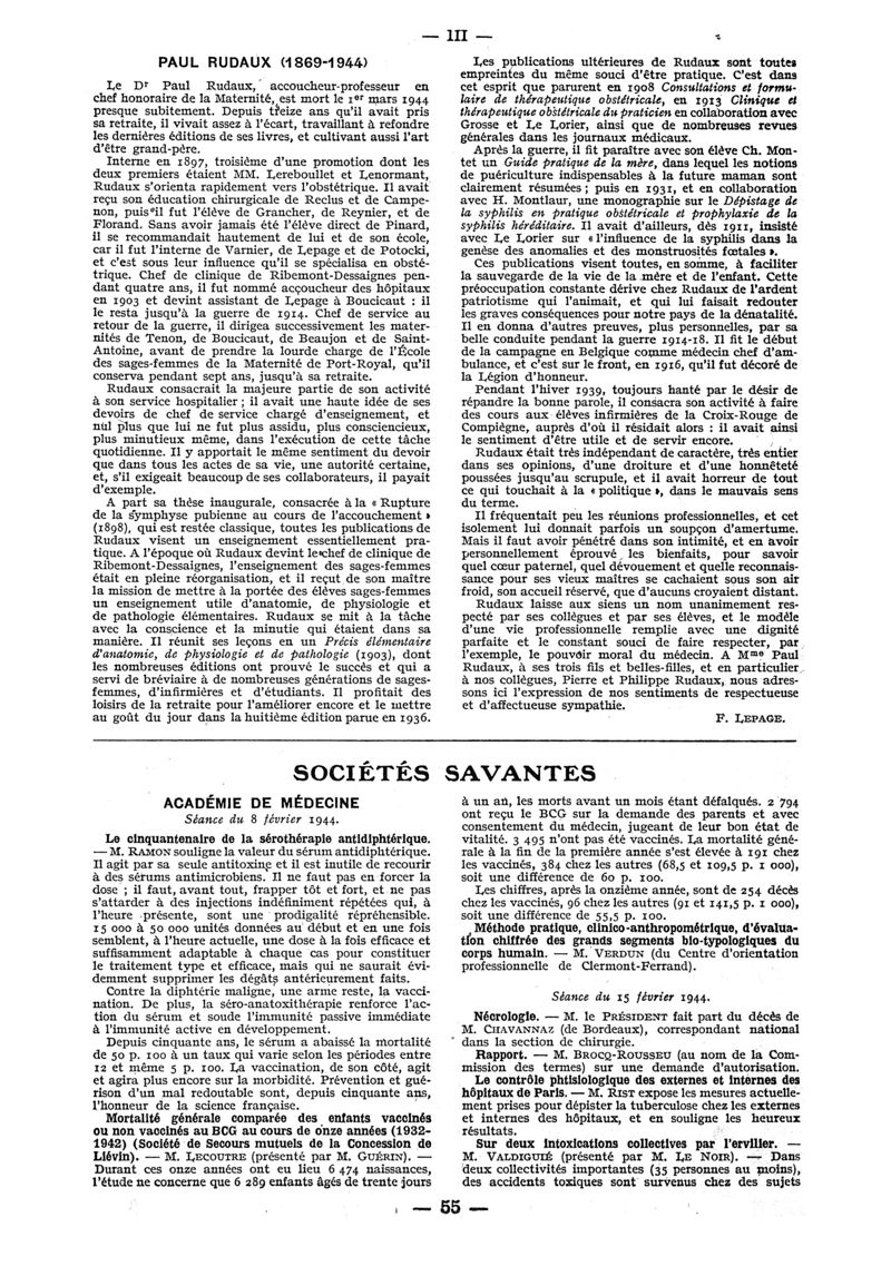 1944, n° 128, partie paramédicale. -