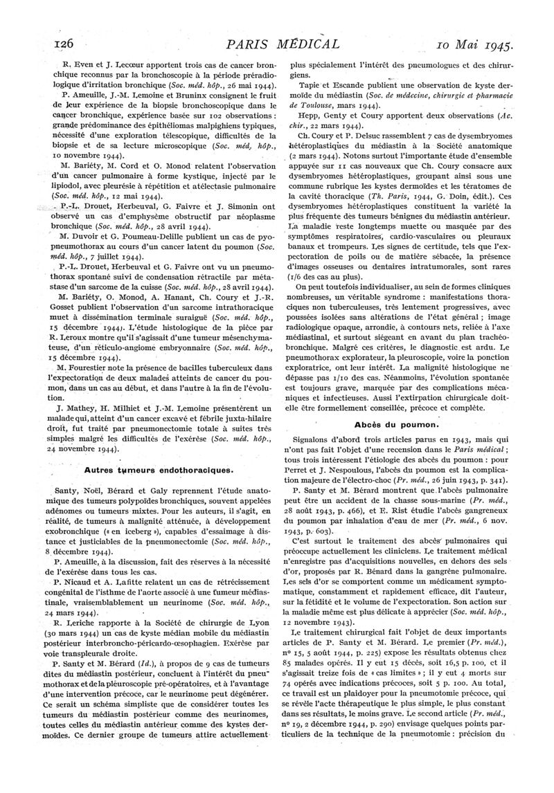 1945, n° 129, partie médicale. -
