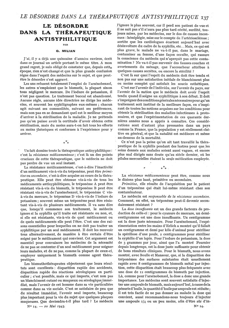 1945, n° 129, partie médicale. -