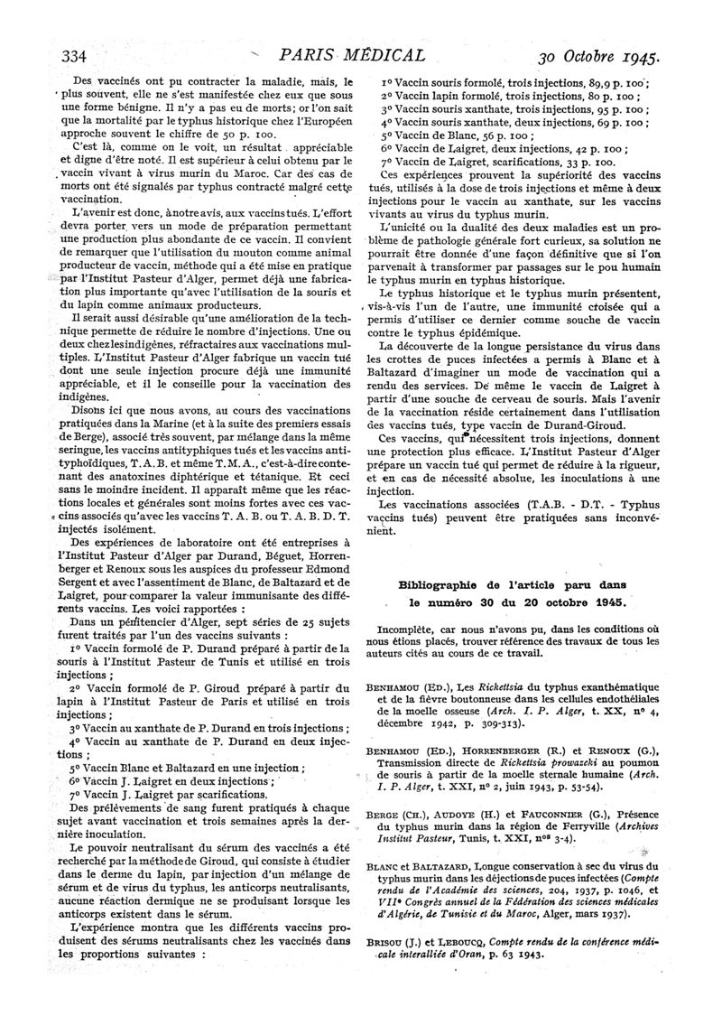 1945, n° 129, partie médicale. -