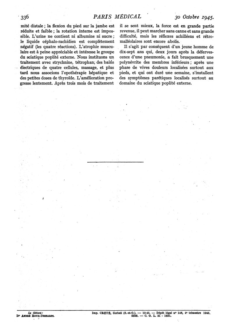 1945, n° 129, partie médicale. -