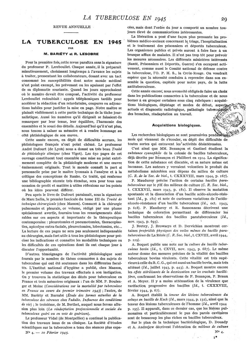 1945, n° 129, partie médicale. -