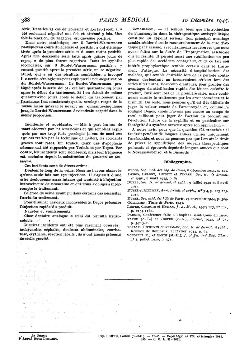 1945, n° 129, partie médicale. -