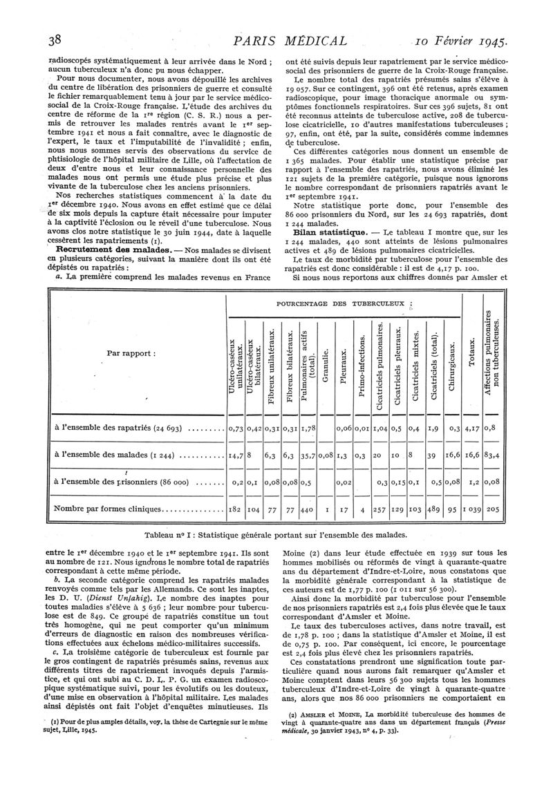 1945, n° 129, partie médicale. -