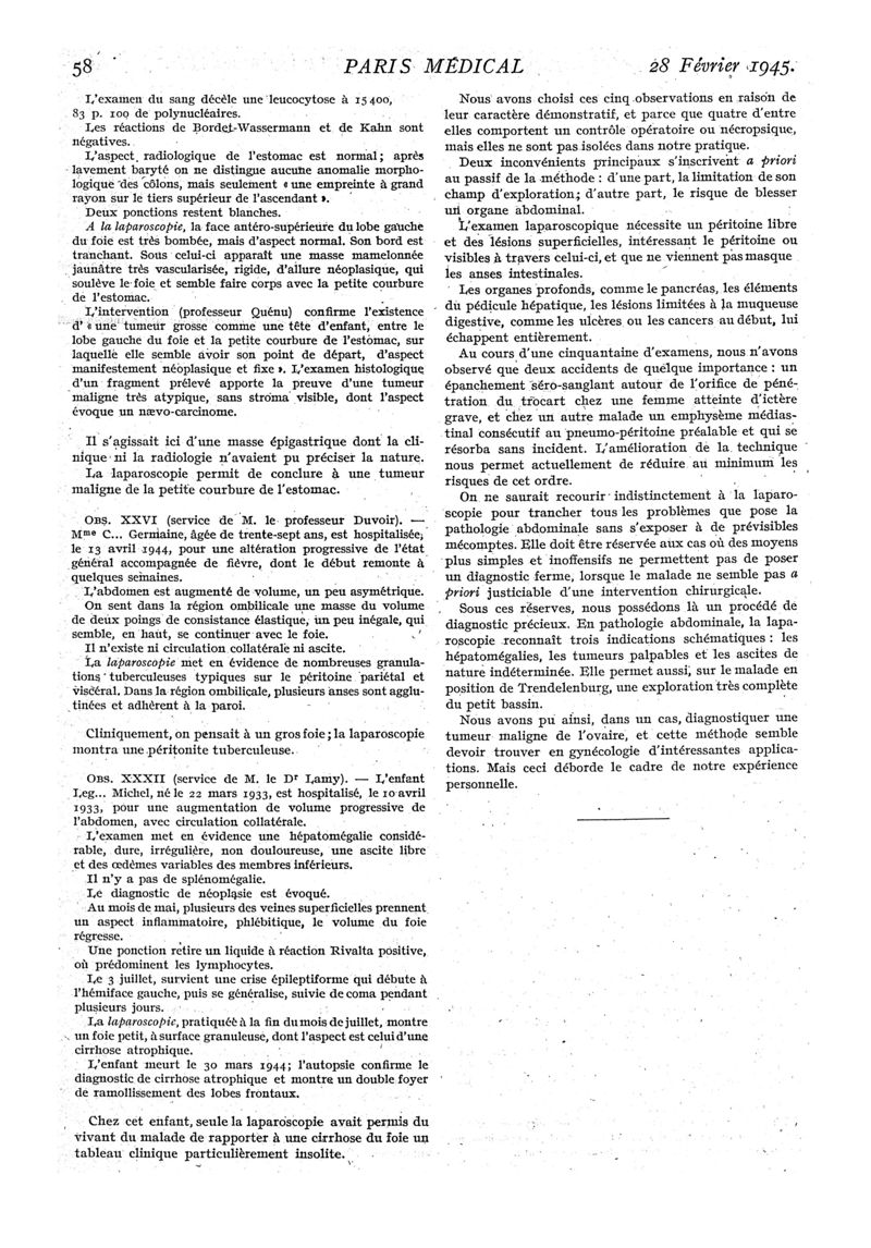 1945, n° 129, partie médicale. -