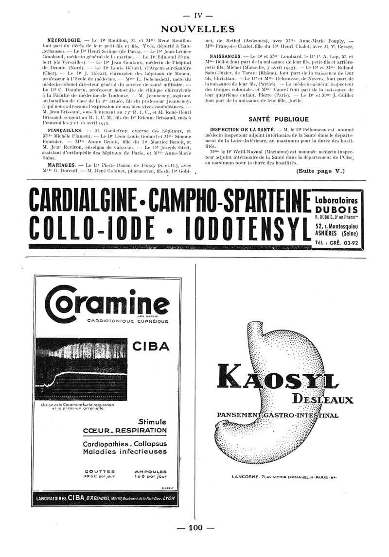 1945, n° 130, partie paramédicale. -