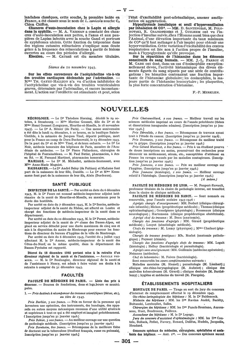 1945, n° 130, partie paramédicale. -