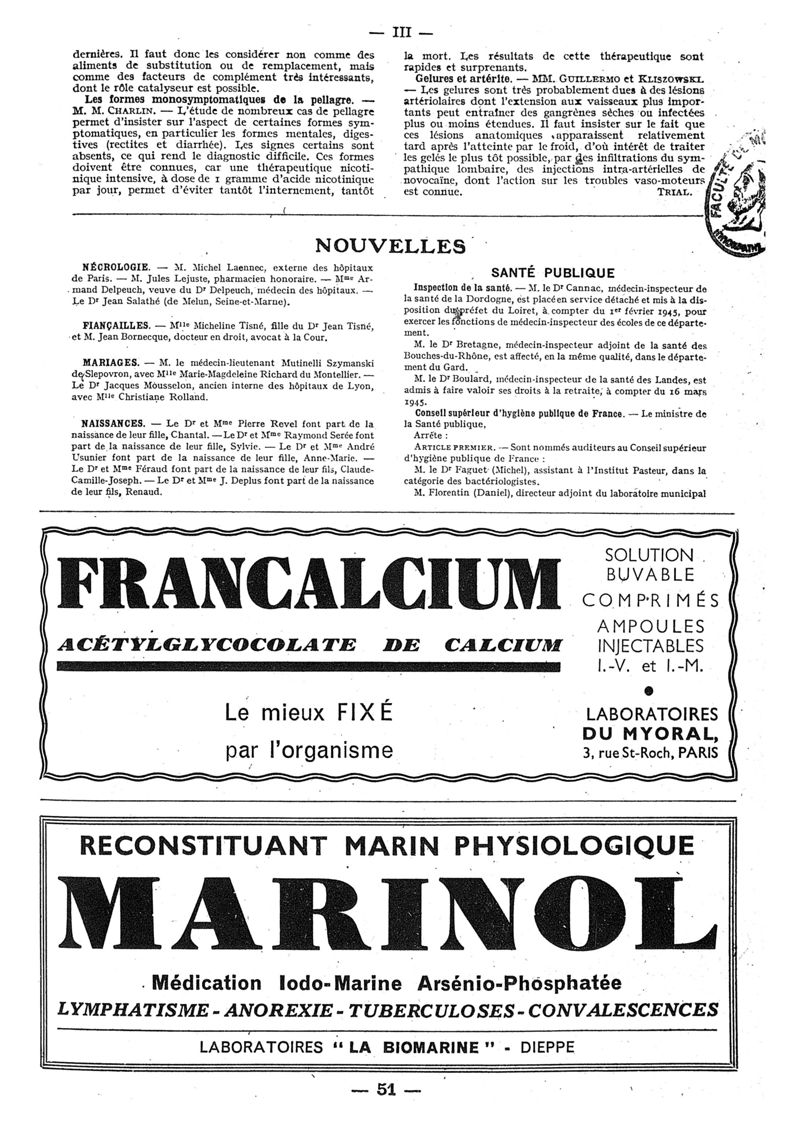1945, n° 130, partie paramédicale. -