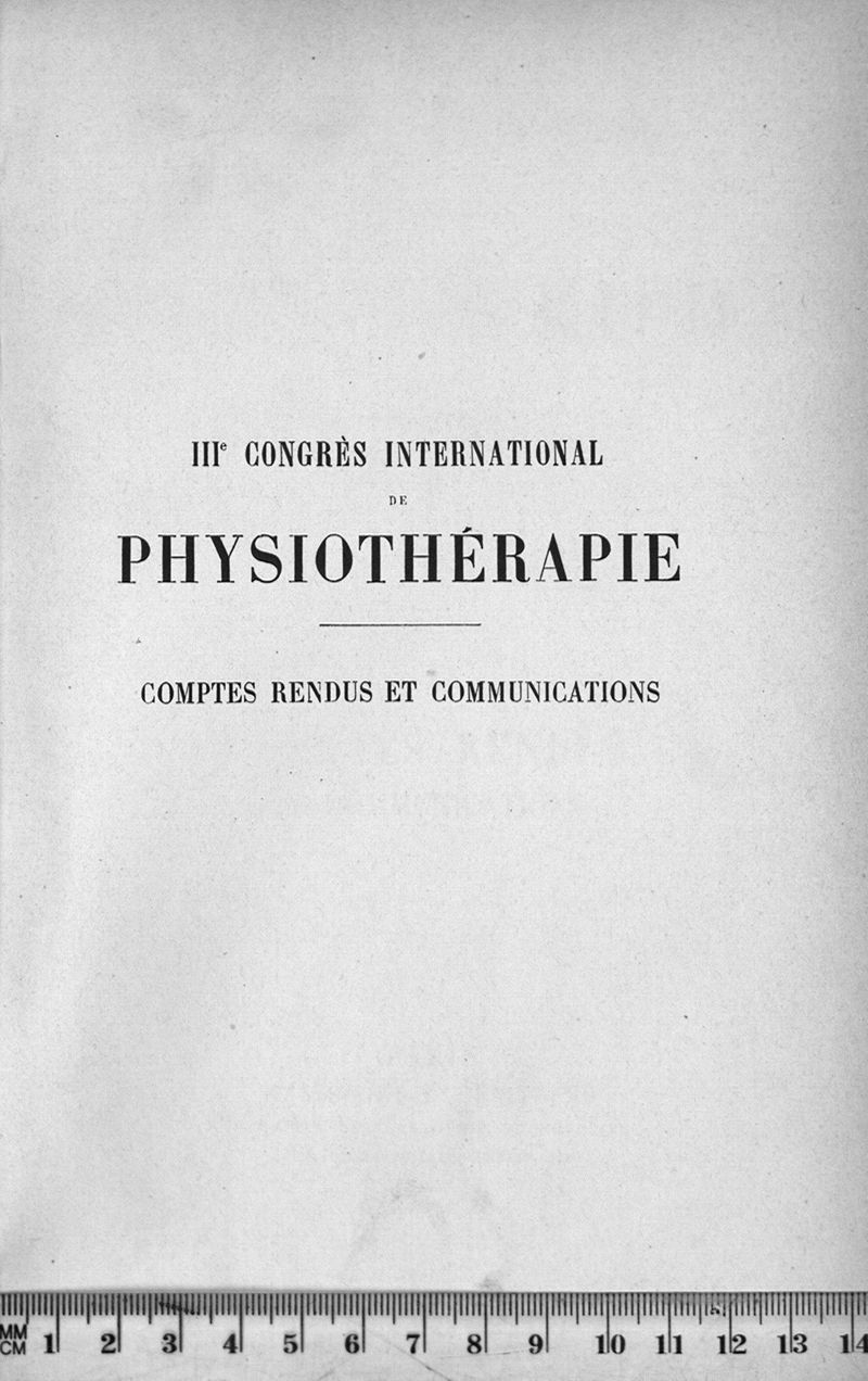 IIIe Congrès international de physiothérapie (20 mars-2 avril 1910): Comptes rendus et communications