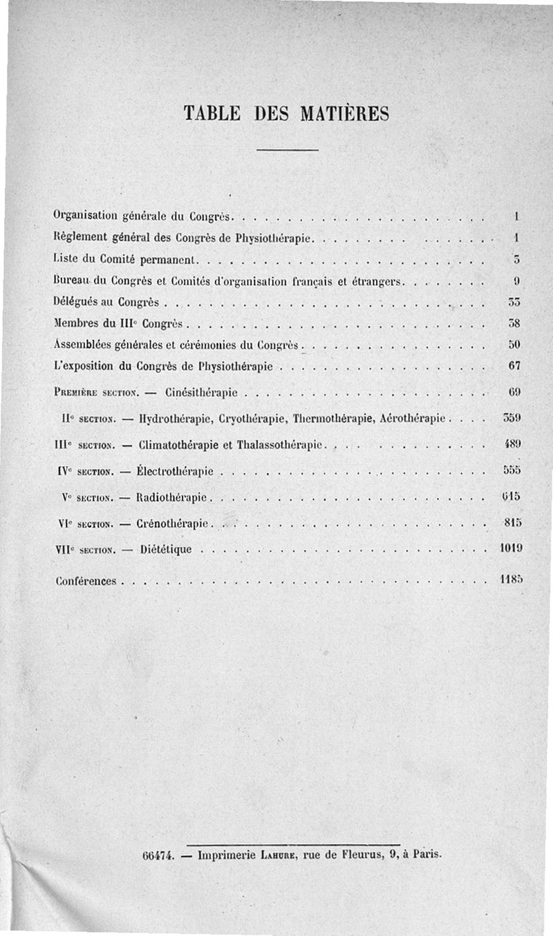 IIIe Congrès international de physiothérapie (20 mars-2 avril 1910): Comptes rendus et communications