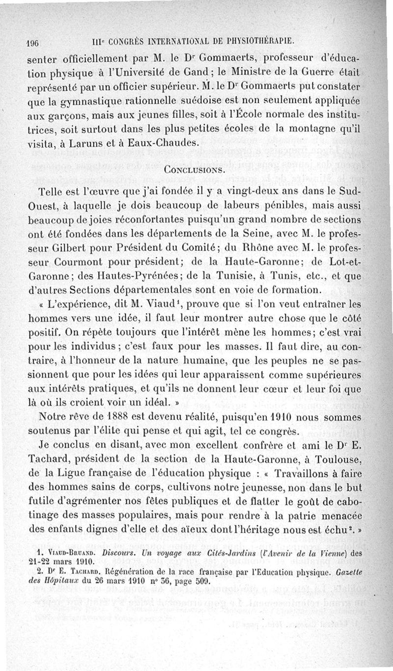 IIIe Congrès international de physiothérapie (20 mars-2 avril 1910): Comptes rendus et communications