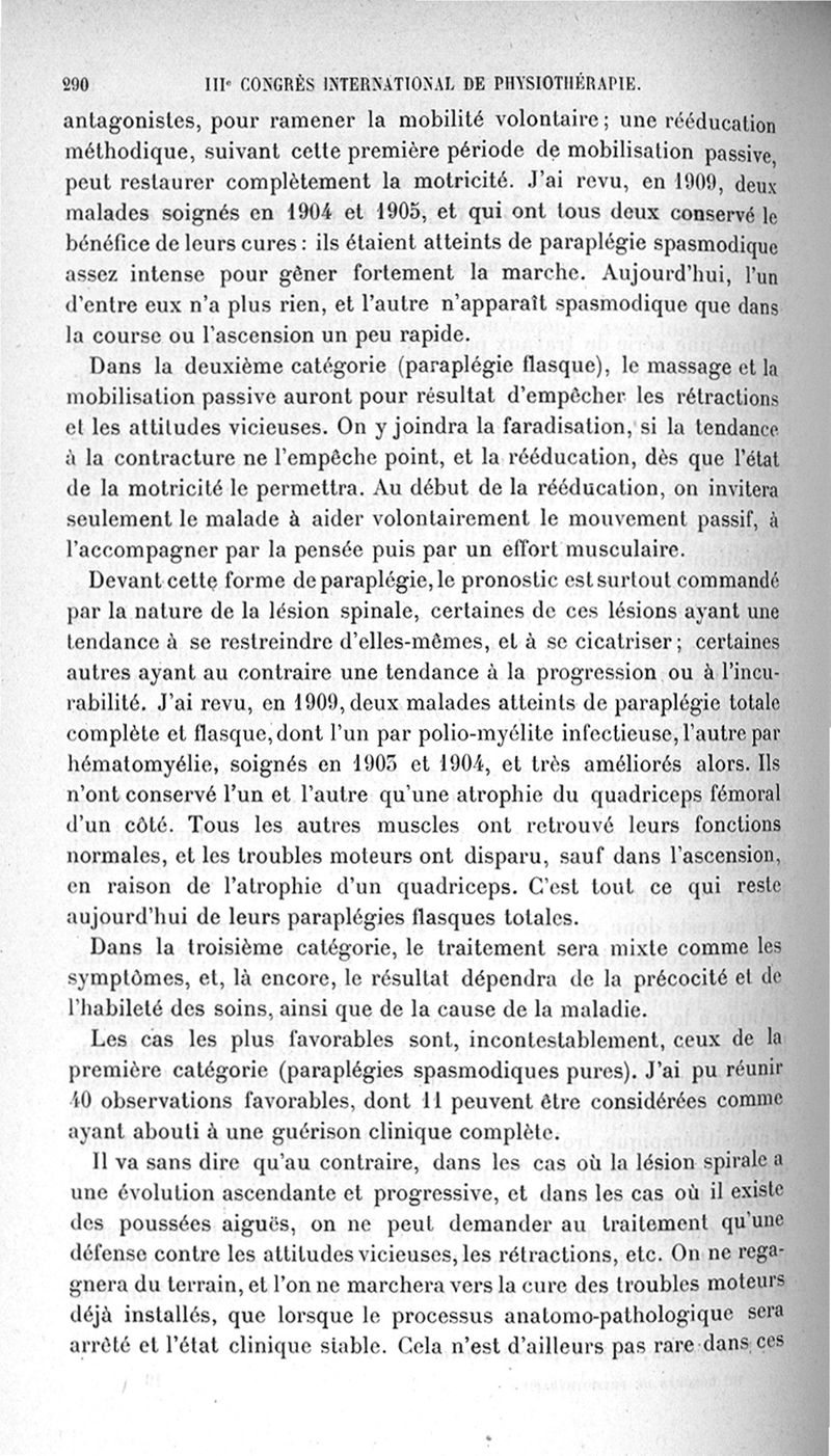 IIIe Congrès international de physiothérapie (20 mars-2 avril 1910): Comptes rendus et communications
