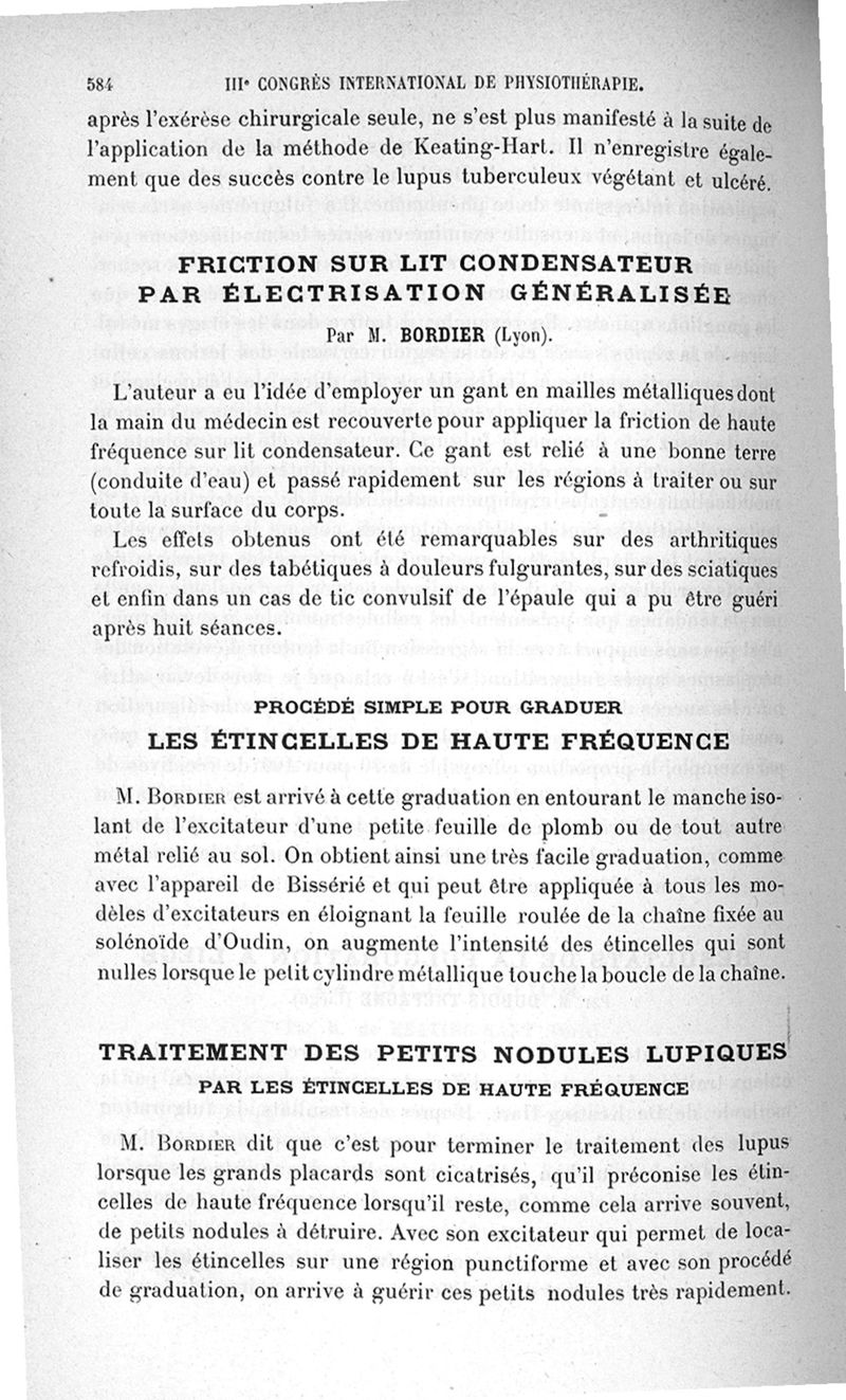 IIIe Congrès international de physiothérapie (20 mars-2 avril 1910): Comptes rendus et communications