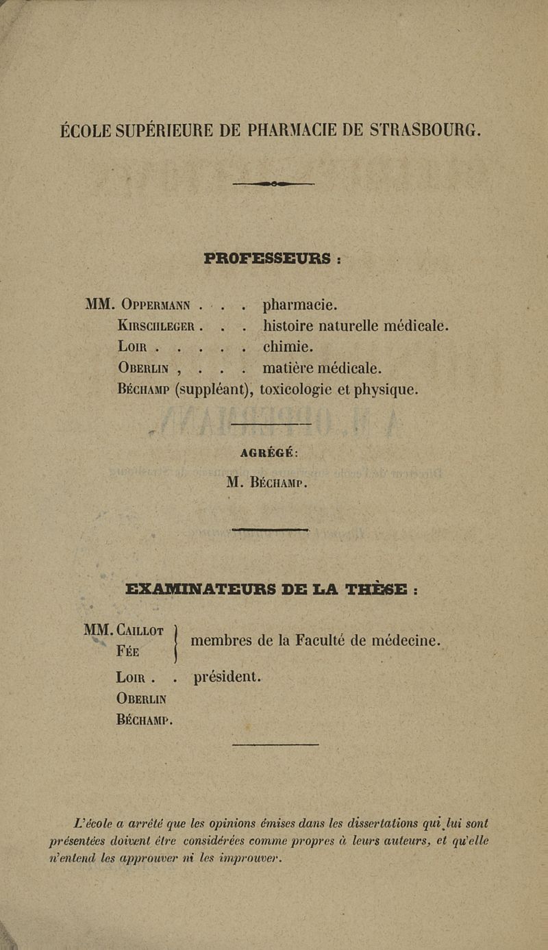 Thèse de chimie de l'École supérieure de pharmacie de Strasbourg, 1853.