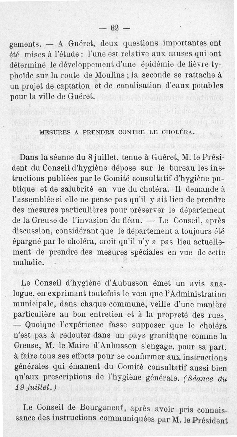 Rapport général sur les travaux des conseils d'hygiène publique et de salubrité pendant les années 1883 et 1884, présenté à M. A. Dumonteil, préfet de la Creuse, par M. le Dr F. Villard,...