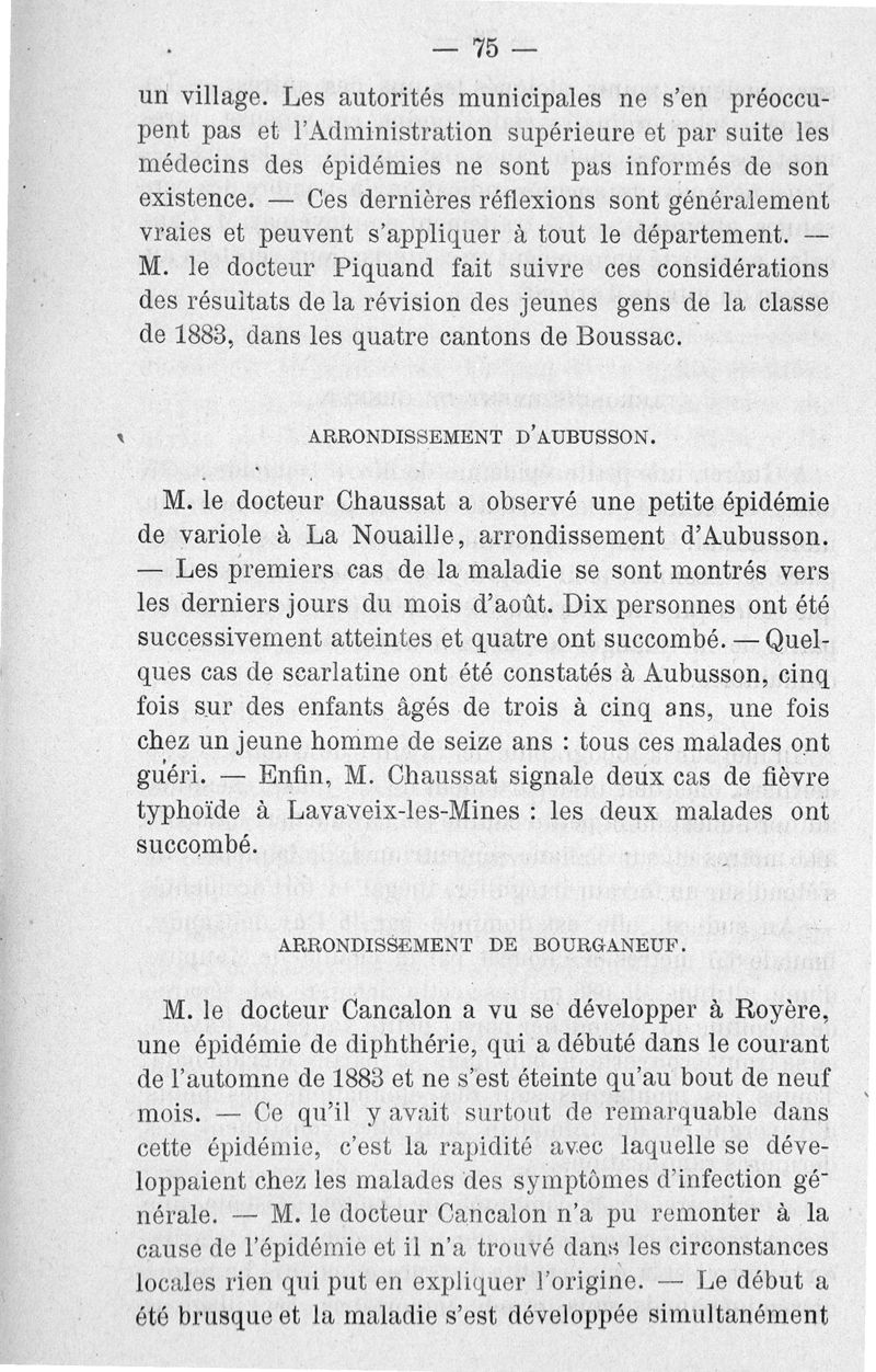 Rapport général sur les travaux des conseils d'hygiène publique et de salubrité pendant les années 1883 et 1884, présenté à M. A. Dumonteil, préfet de la Creuse, par M. le Dr F. Villard,...