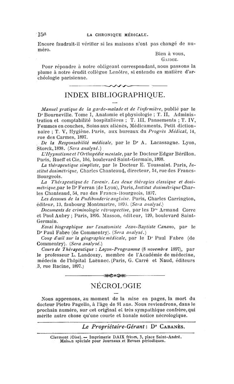 Paris : Chronique médicale,