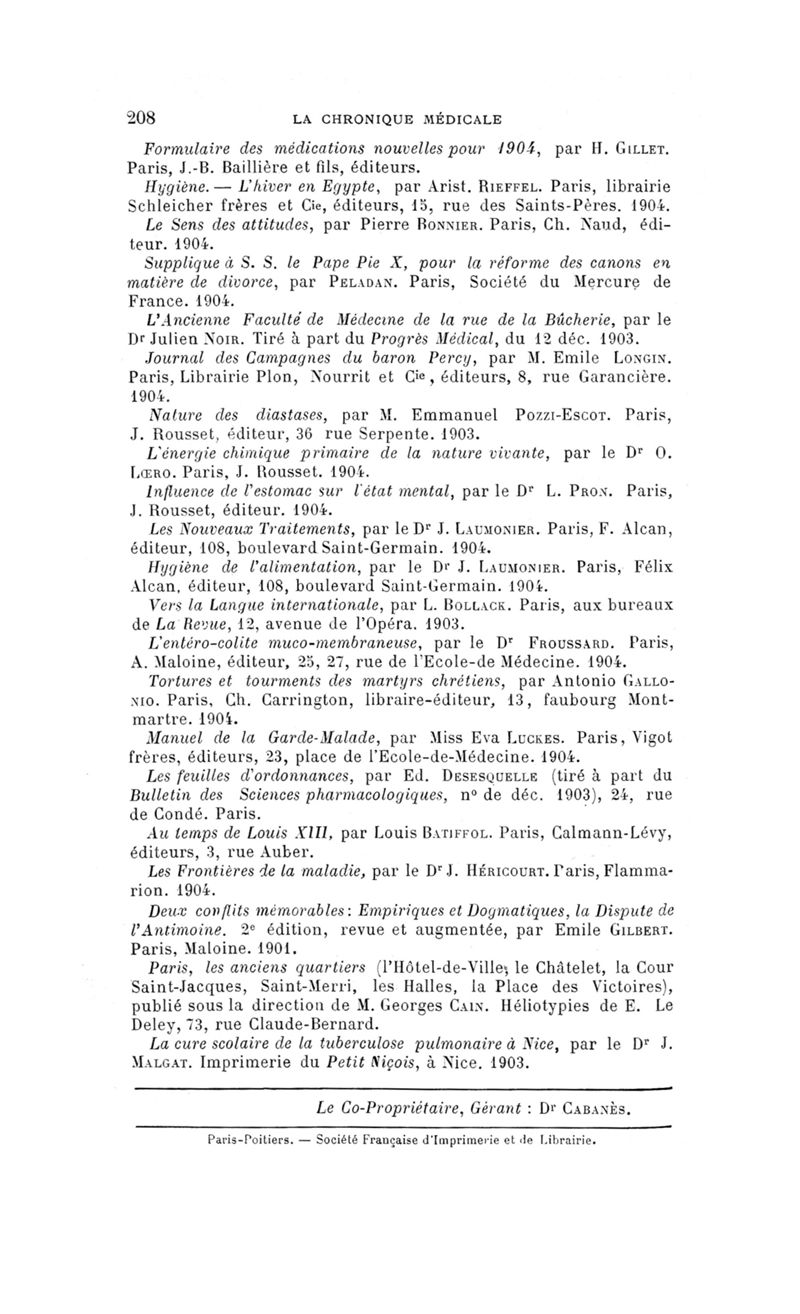 Paris : Chronique médicale,