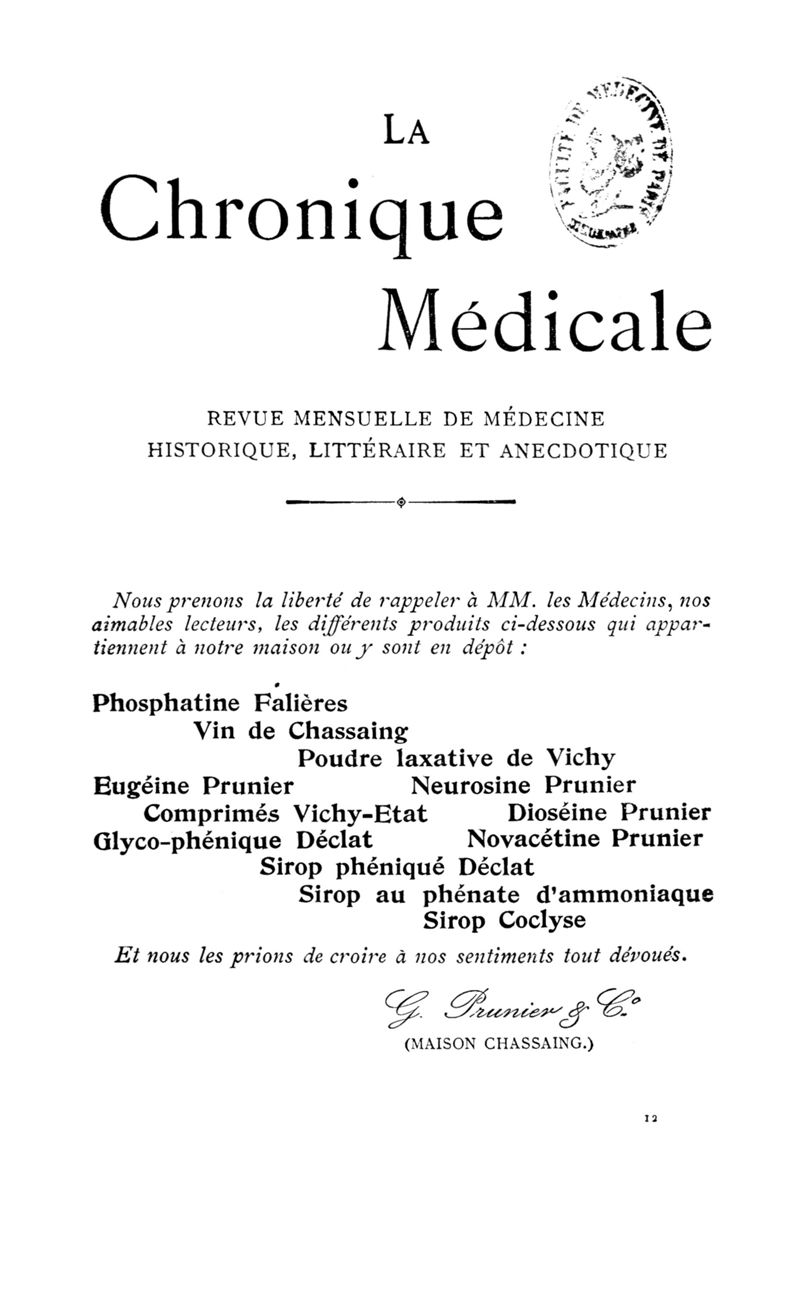 Paris : Chronique médicale,