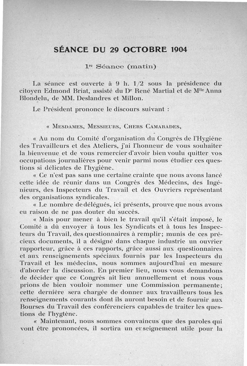 Congrès de l'hygiène des travailleurs et des ateliers (1 ; 1904 ; Paris).